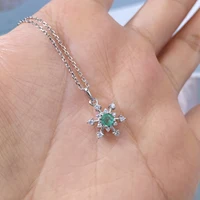 SILE Trendy Snowflake Pendants 100% 925 Sterling Silver Jewelry Women Natural Emerald Necklaces Clavicle Chain Party Jewel Gifts