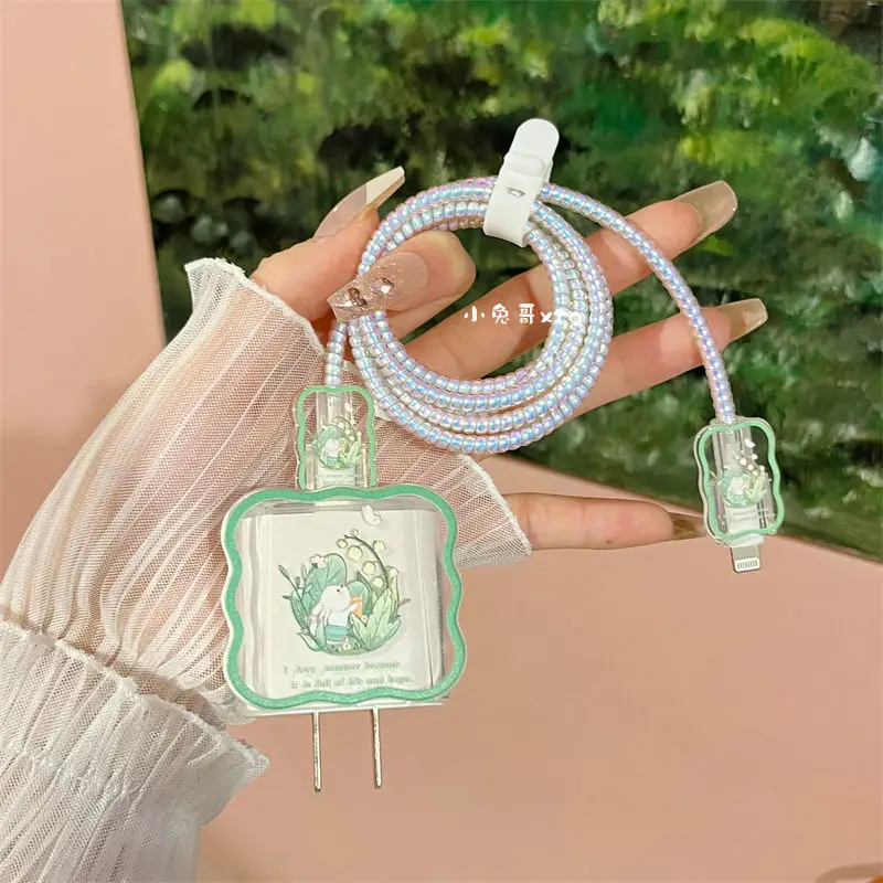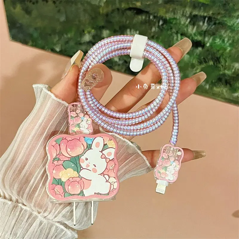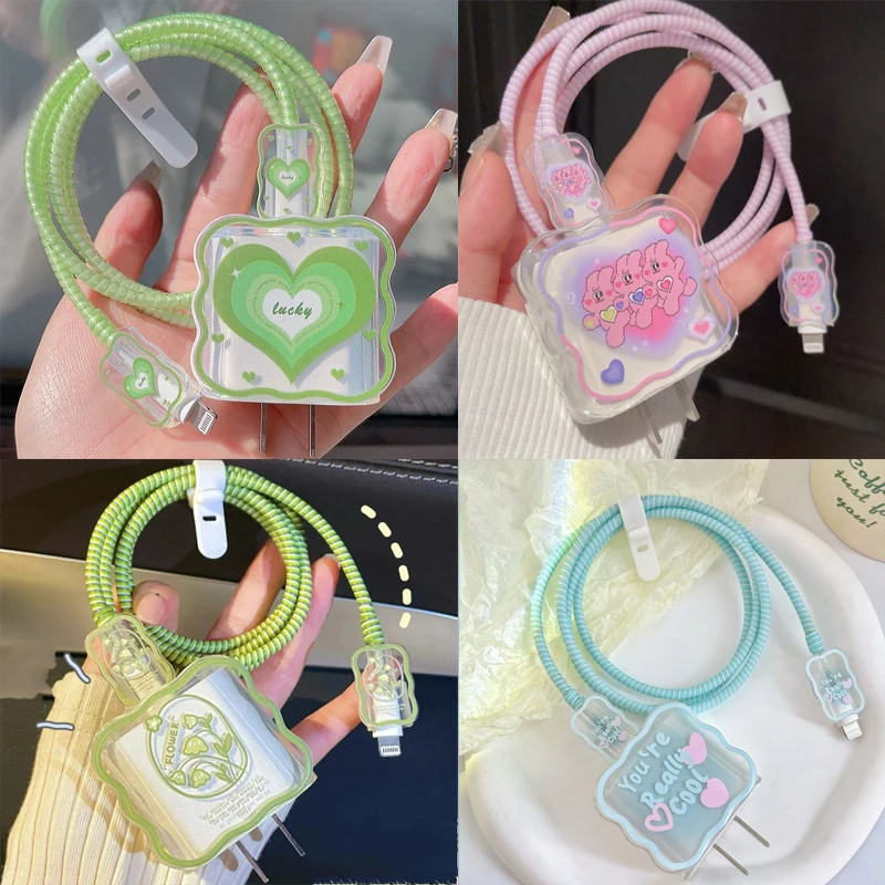 USB Cable Protection For iphone 18, 20W Original Charger Protector Cover Cartoon Heart Flower Protective Data Line Spiral Winder