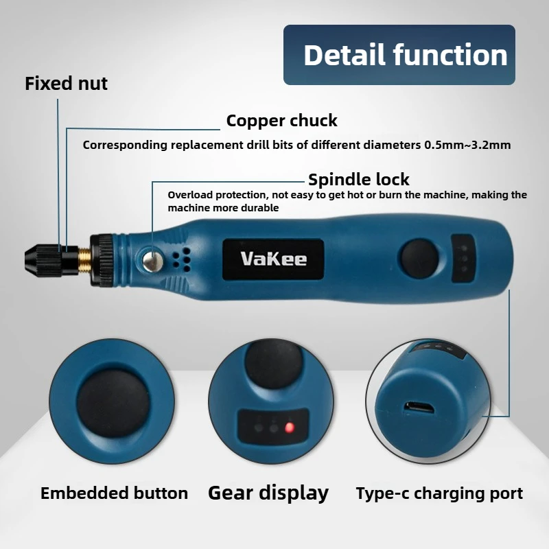 Vakee Cordless Rotary Tool Kit Cutting Sanding Woodworking Engraving Pen for Jewelry Metal Glass Mini Cordless Drill for DIY Mas