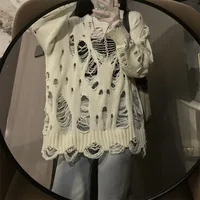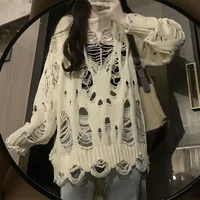 Vintage Hole Hollow Out Knitted Sweater Woman Harajuku Loose Long Sleeve Jumpers Women High Street Y2K Smock Pullovers