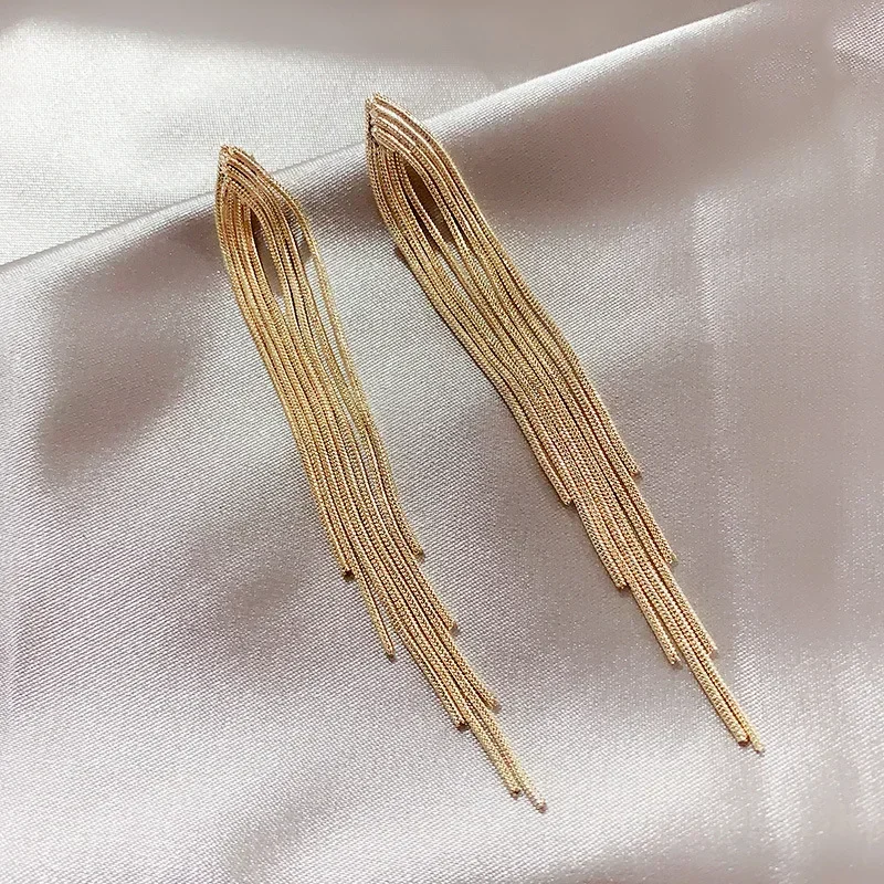 Be the first to review “Vintage Long Gold Color Earrings Shiny Thread Tassel Drop Earrings For Women Luxury Hanging Korean Elegant Wedding Party Jewelry” Cancel reply