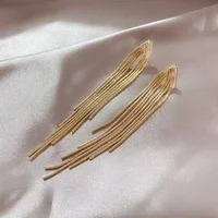 Vintage Long Gold Color Earrings Shiny Thread Tassel Drop Earrings For Women Luxury Hanging Korean Elegant Wedding Party Jewelry