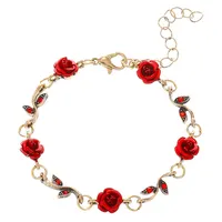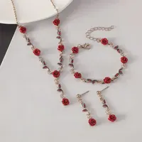 Vintage Red Rose Flower Shape Jewelry Set Necklace Bracelet Earring Stud 4 Pcs Set Girls Jewelry for Party Birthday Gift