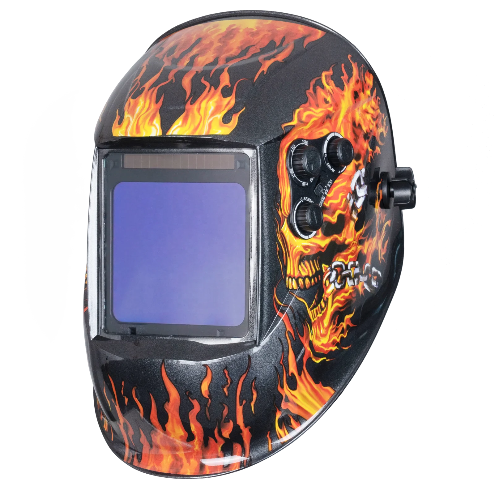 This welding helmets features is improving visibility and reduces eye strain by minimizing the traditional lime green color in the view screen.