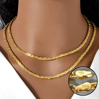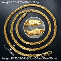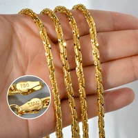 Width 4mm Italian 750 Luxury 18k gold Plated textured Dubai Necklace DIY simple jewelry men women party