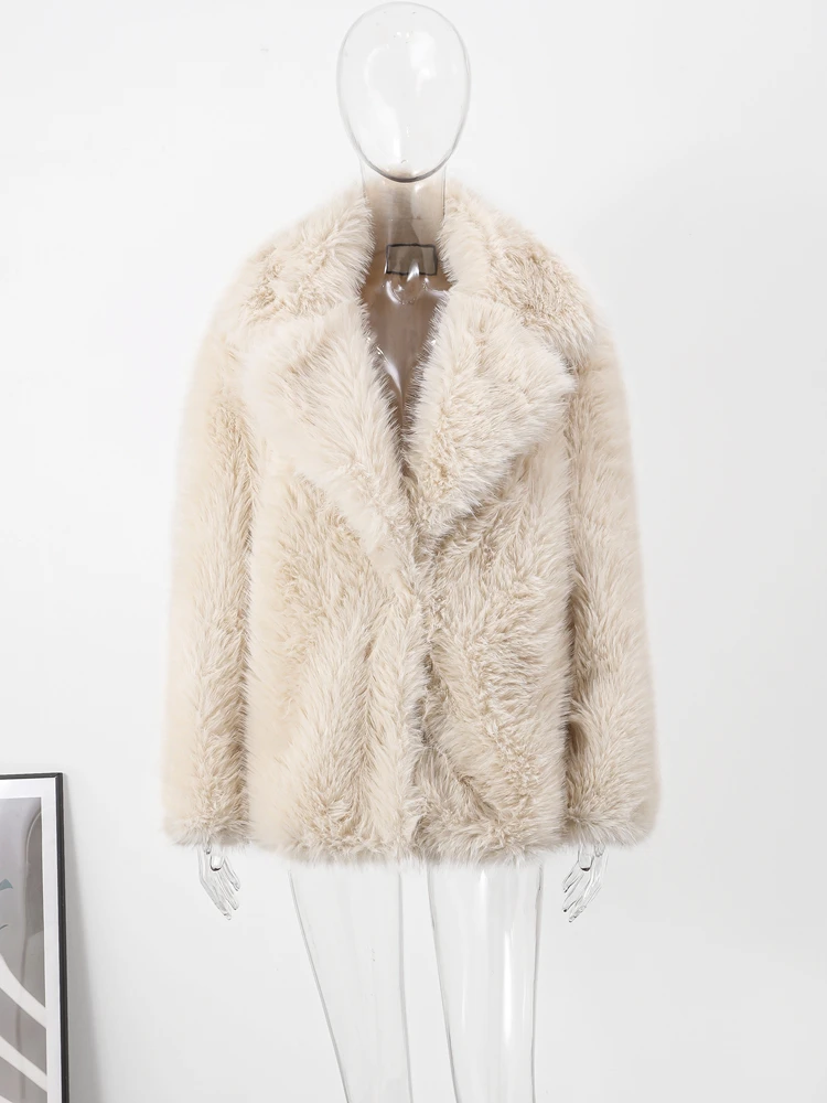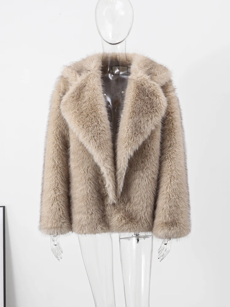 Winter Fluffy Furry Faux Fur Long Jacket Coat Women Loose Lapel Long Sleeve Thick Warm Coats Female Luxury Fashion Lady Overcoat