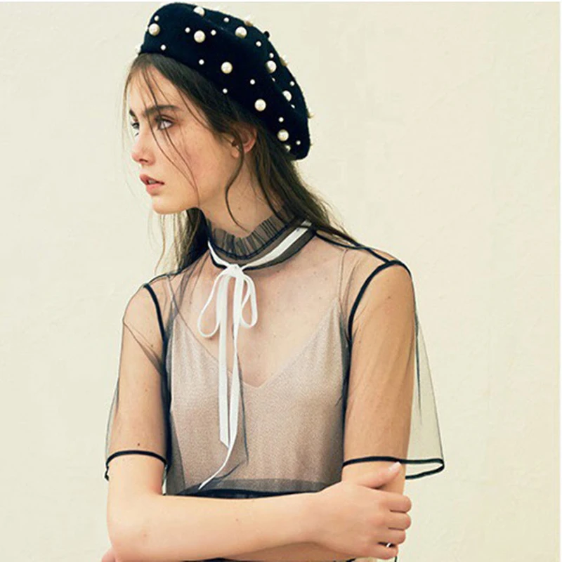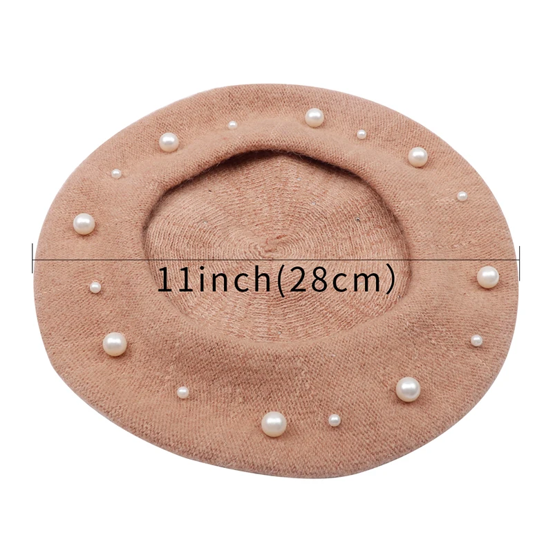 Winter Hat Knitted Wool Beret Bonnet Female French Winter Warm Pearl Berets Caps For Women Beading Ski Boina Painter Gorras