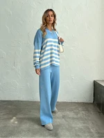 Winter Knit Tracksuit Two Piece Set Striped Sweater Matching Sets Women Knit Suit Knitted Two Piece Pants Sets For Women