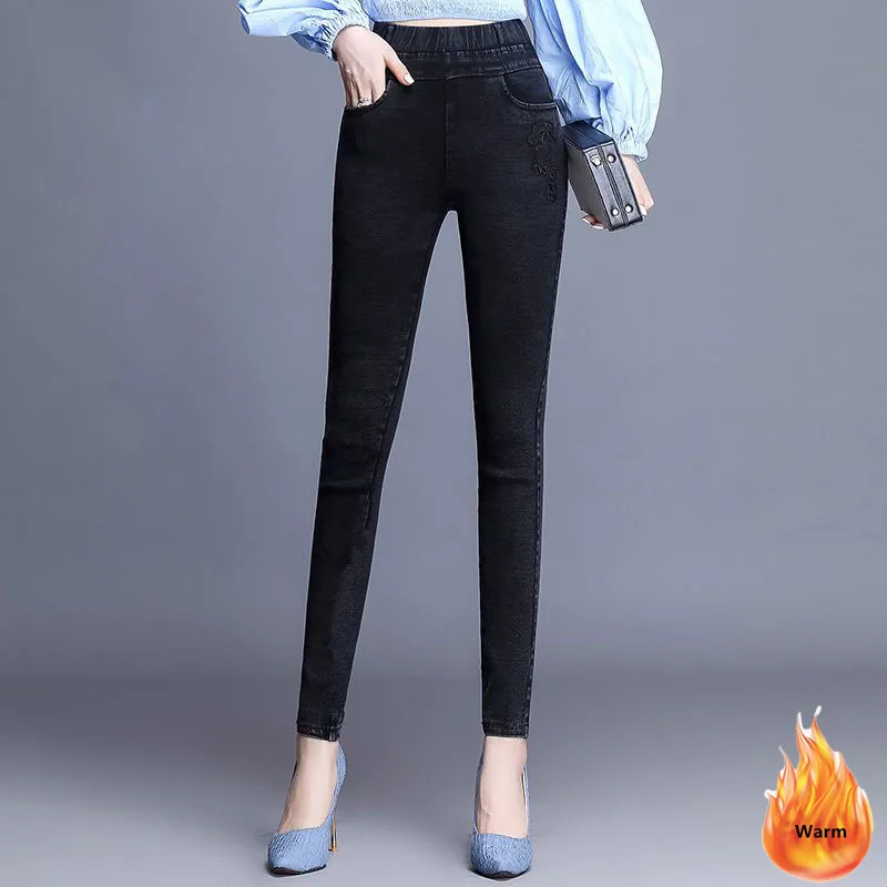 Winter Thicken Jeans Pencil Denim Pants Women Plush Velvet Lined Warm Skinny Vaqueros Streetwear High Waist Stretch Kot Pantolon