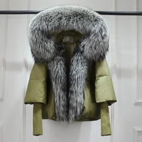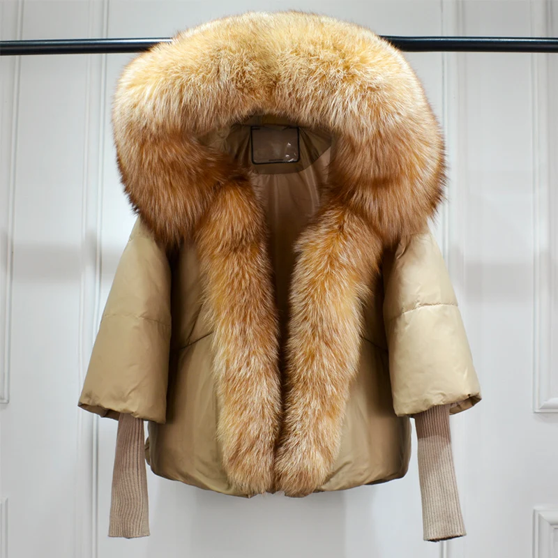 Winter Women Warm White Duck Down Jacket Loose Hood Puffer Coat Natural Real Fox Fur Collar Thick Luxury Outerwear