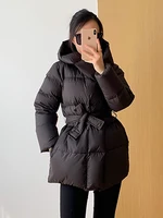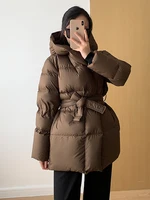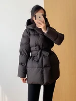 Winter Women’s Down Jackets Ultra Light Warm Casual Coat Female Puffer Jacket With Belt Plus Size Hooded Short Parka