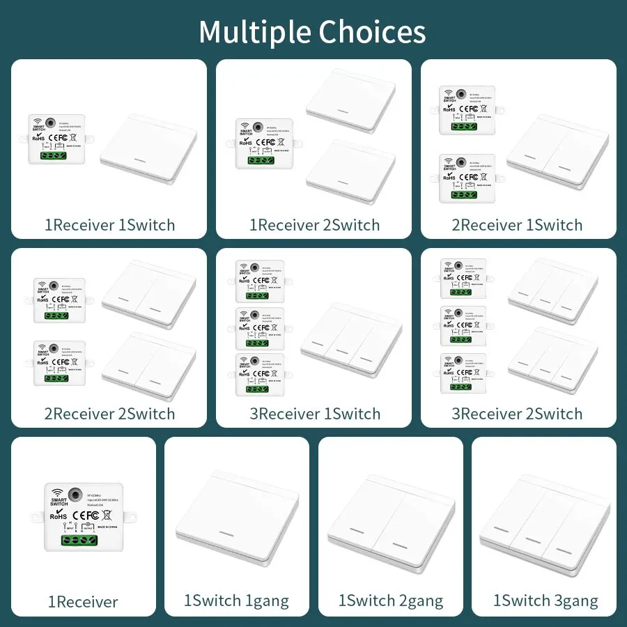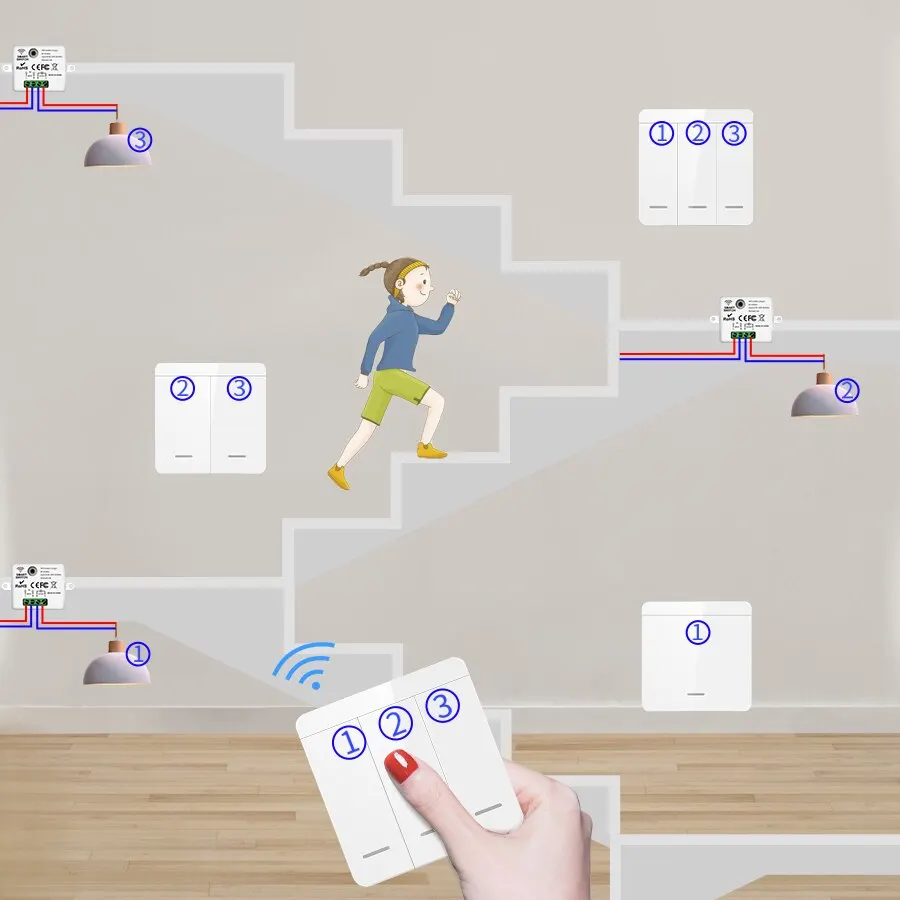 1.Multi switches can control different receivers. Save energy, avoid darkness.
