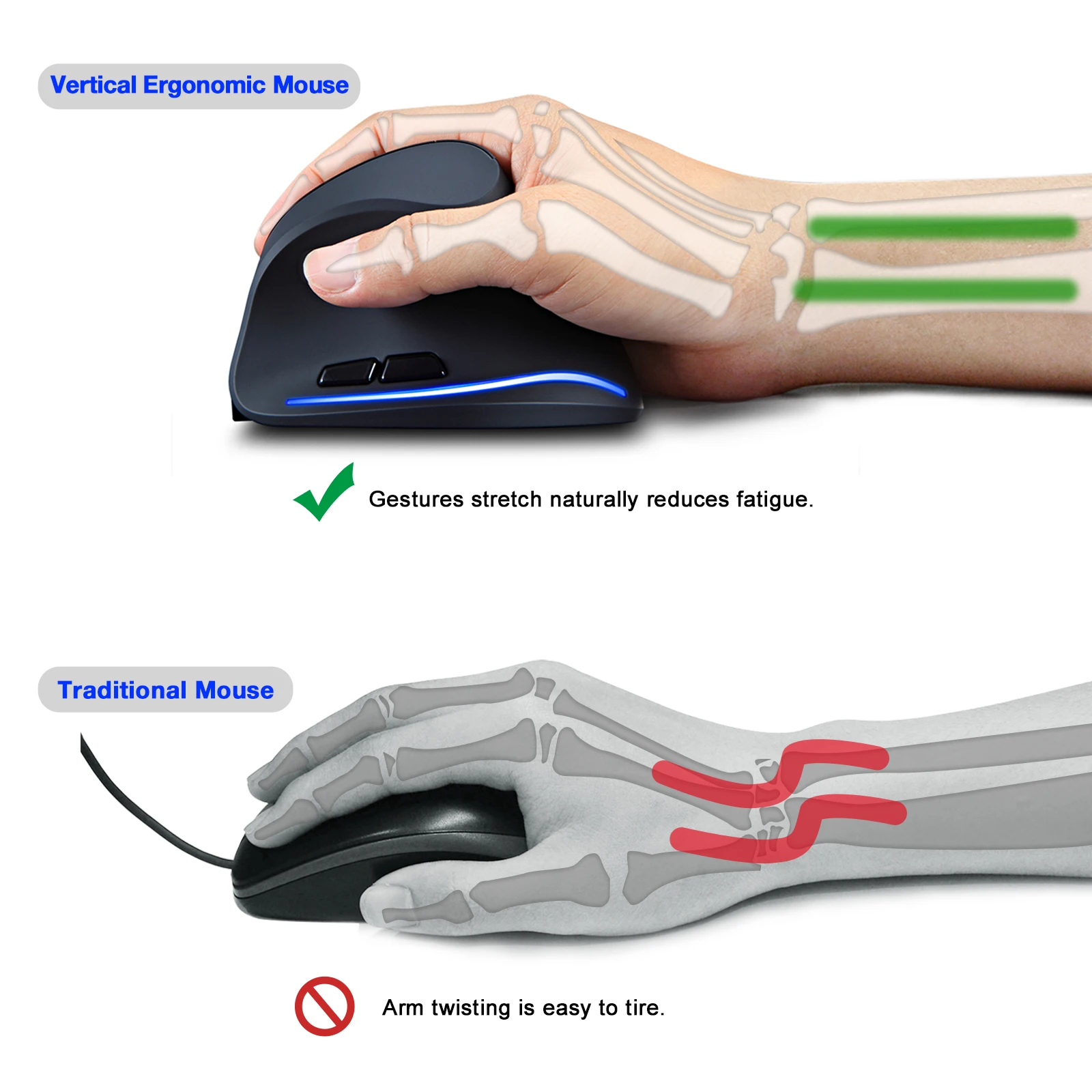 Wireless Vertical Mouse Ergonomic Optical Mouse USB Rechargeable Mice 2400DPI For PC Gaming Windows Mac Laptop PUBG LOL