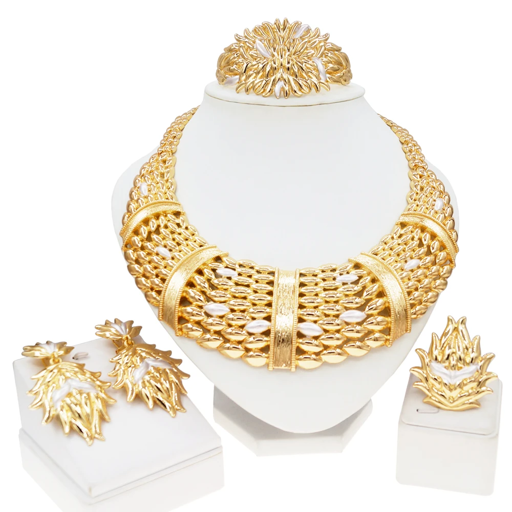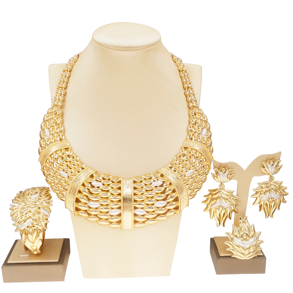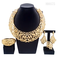 Woman Jewelry Set Italian Gold Plated Big Necklace Bracelet Ring Luxury Hollow Out Round Pendant Banquet Party Favors