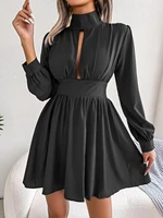 Women Autumn Casual Hollow Out Long Sleeve A Line Dress Black Red White