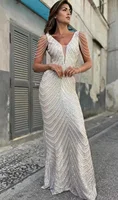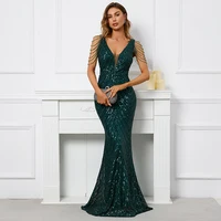 Women Beading Dress Long Prom Dress Deep V Neck Silver Sequin Evening Dress Sexy Party Maxi Dress