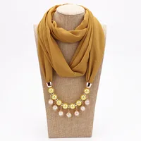 Multi-style Decorative Jewelry Necklace Resin Beads Pendant Scarf Women Foulard Femme Head Scarves Hijab Scarfs