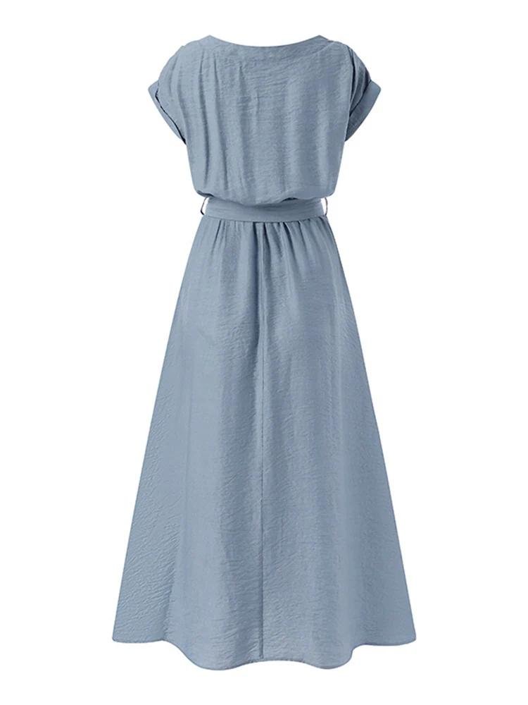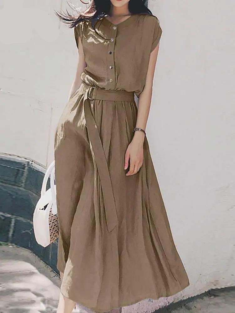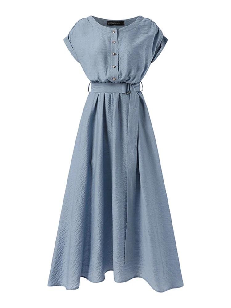 Material: 20% Polyester+80% Rayon Colors: Blue, Army Green, Khaki Sleeve Length: Short Sleeve Neckline: O-Neck Pattern: Solid Color Length: Mid-Calf Length Buckle chain: Button Down Front Waistline: Elastic waist Thickness: Thin Style: Leisure, Bohemian, Retro, Europe, Shirtdress Season: Spring, Summer, Autumn Occasion: Family, Party, Beach, Wedding, Holiday Attentions: 1.The Real Object May Exist Slightly Colors Differences Compared To Images As Different Computers Display. 2.There Might Be A Manual Measuring 1-3 cm Error. 3.Please Prevail On Real Item, Model Images For Reference Only. 4.Attention: Please check the size chart carefully before placing the order.