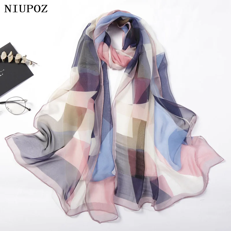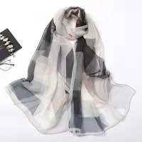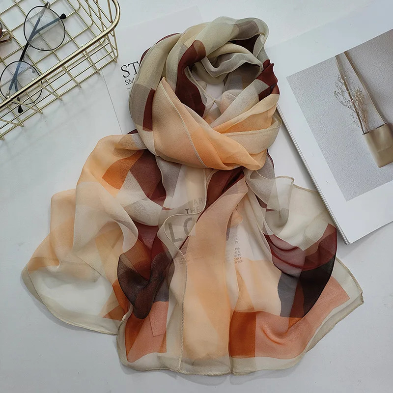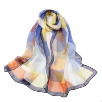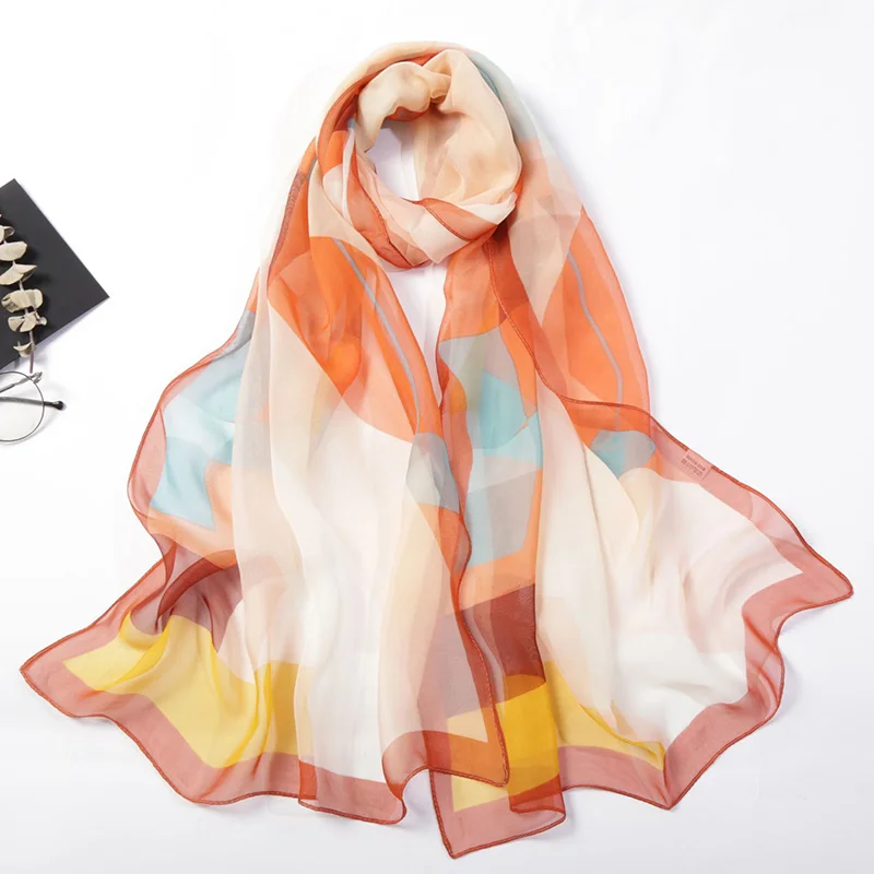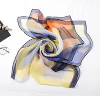 Women Foulard Colorful Geometric Elegant Chiffon Georgette Bandana Scarf Summer Beach Silk Feeling Travel Sun Protection Thin