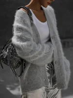 Women Imitation Mink Cardigan Soft V-neck Thick Knitted Jacket Winter Button Vintage Cardigan Sweater for Women