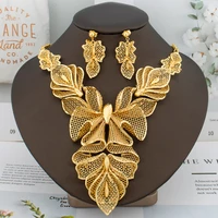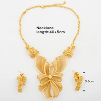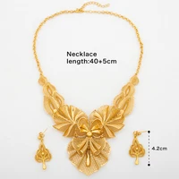 Women Necklace Earrings Italy Fashion Luxury Jewelry Set Bud Large Pendant Earrings Gold Plated Nigeria Dubai Party Jewelry Gift