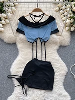 Fairy Grunge Lace Trim Strapless Tube Top + Shorts 90s Vintage Chic Women 2 Piece Set Outfits Chest Wrap Backless Crop Top Camis