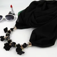 Women Printed Chiffon Ring Scarf Hijabs Multi-style Jewelry Necklace Flower Pendant Scarf Lady Apparel Accessories