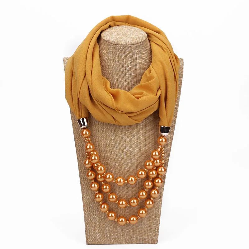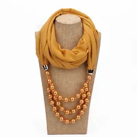 Women Shawl Hijabs Pendant Necklace Scarf Women Solid Color Shawls Jewelry Scarf Female Stole Beach Trip Accessories Scarves