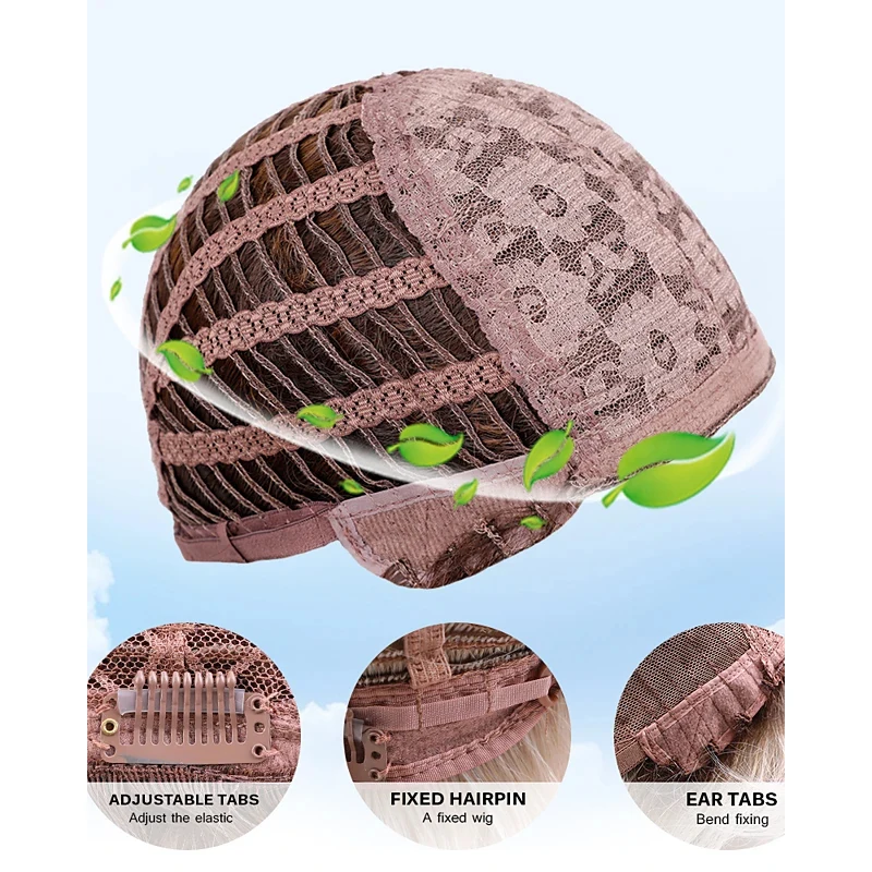 3.The inner design is adjustable, so you are able to adjust the size for an ideal fit. The hooks inside the wig are fully adjustable to fit all sizes .