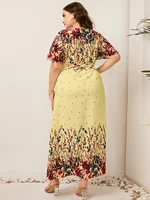 Plus Size Floral Print Wrapped V-Neck Women Dresses Short Ruffle Sleeves A-Line Bohemia Robe Casual Lady Vacation Clothing