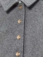 Women’s Autumn New Fashion Gold Button Woollen Jacket Coat Lapel Long-sleeved Pocket Loose Female Short Outwear Chic Tops