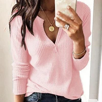 Women‘s Autumn Winter V-Neck Long Sleeve Tops Pullover Ladies Casual Loose Shirts Blouse Female Jumper Clothing Plus Size