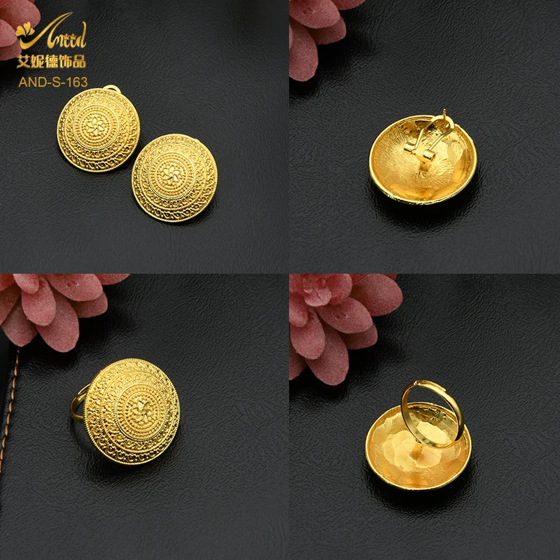 Women’s Ethiopian Gold Color Jewelry Set Bridal Dubai Jewellery Wedding Brazilian Eritrean African Earring Necklaces Set