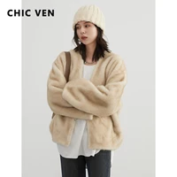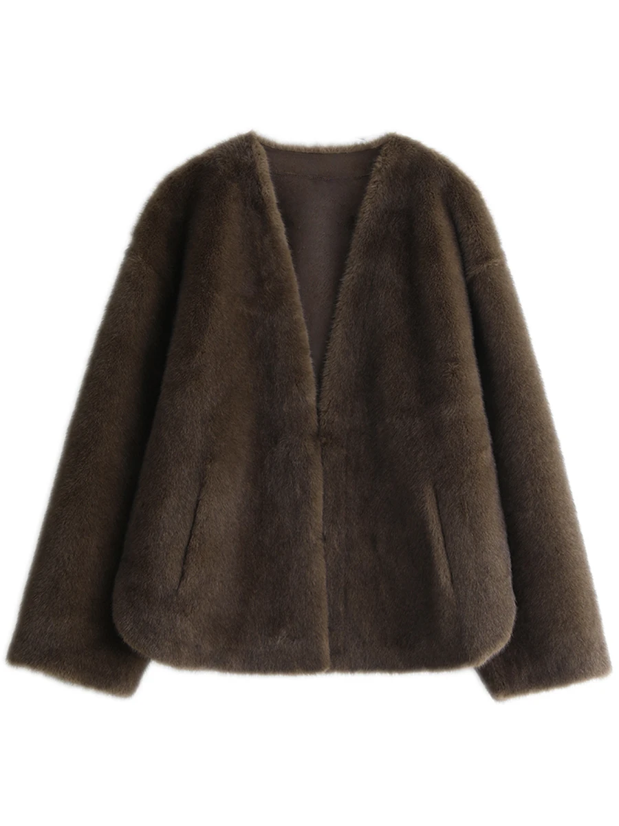 Women’s Jacket Loose Casual Solid Overcoat New Female Plush Coat V-neck Woman Outerwear Autumn Winter