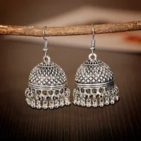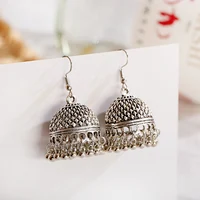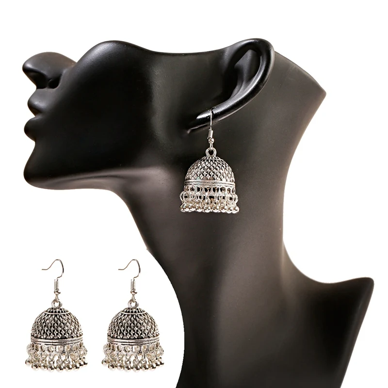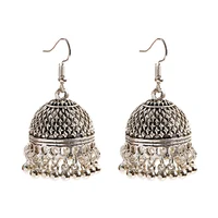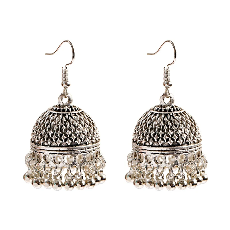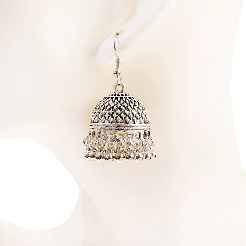 Women’s Silver Color Beads Tassel Jhumka Earrings Ethnic Gypsy Gold Color Alloy Big Bell Drop Earring Fashion Jewelry
