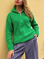 Women’s Turtleneck Zippers Fashion Women Sweaters Solid Green Blue Pullover Long Sleeve Casual Knitted Sweater Woman Winter