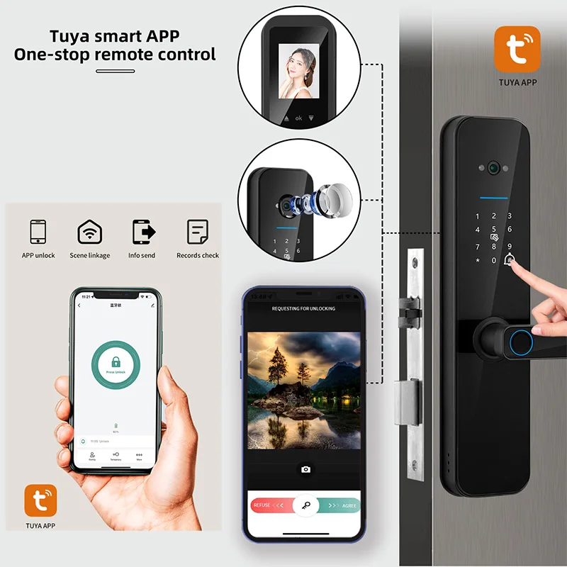 Tuya WiFi Digital Electronic Smart Door Lock With Biometric Camera Fingerprint Smart Card Password Key Unlock
